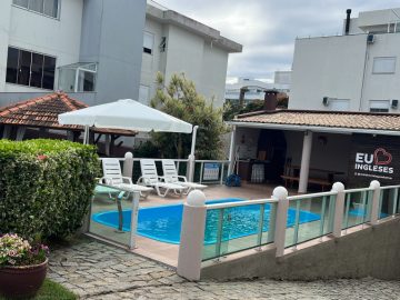 Vendo pousada com 14 aptos ( 8 kitinetes, 2 suítes, 3 aptos de dois dormitórios e 1 apto de um dormitório) salão coletivo, recepção, área externa com piscina, churrasqueira, quiosque, estacionamento para 7 carros em garagem coberta e 9 no pátio , pode ser construído mais aptos na parte superior do prédio, a pousada fica a 300m da praia dos Ingleses, funcionando desde 2005. Área do terreno 896 m2.